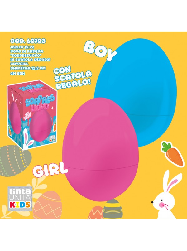 Uovo di Pasqua TintaUnita Kids Sorpresuovo Boy Girl con colori + album + plastilina